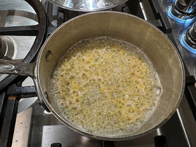 Melt the butter in a small sauce pan. Add the garlic and ginger and cook stirring for about 2 minutes over medium-low heat.